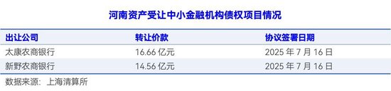 河南资产管理有限公司(以下简称河南资产)是河南省另一地方AMC。今年以来,河南资产也参与了省内中小金融机构的风险化解。例如,河南资产通过公开竞价形式参与省内太康农商银行、新野农商银行的不良资产转让,并于今年7月16日签订不良资产收购协议。公司向两家银行支付的资产包收购价款分别为16.66亿元、14.56亿元。